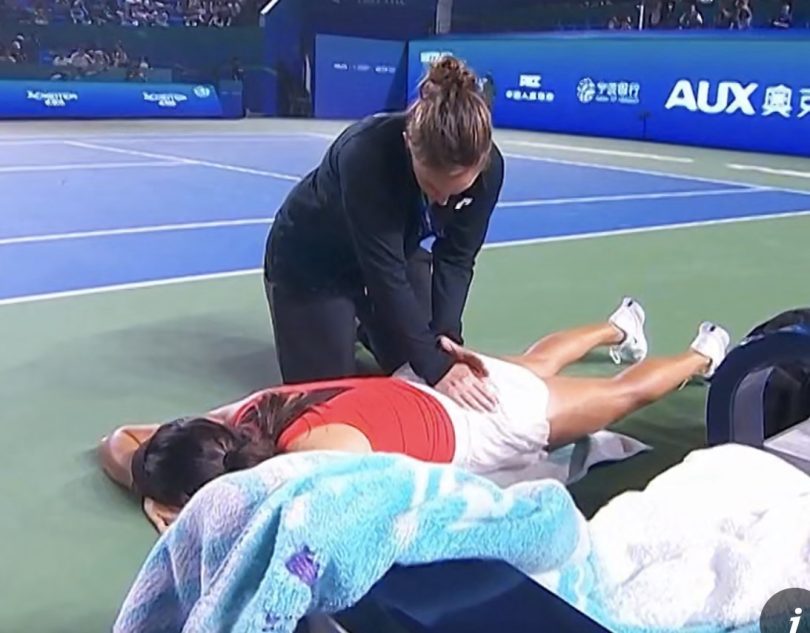 Concern grew during the second set as the 22-year-old quickly fell behind 2-0, moving sluggishly and being outperformed by Zhu, who was ranked just outside the top 30 two years prior before injuries caused her ranking to drop below 200.
